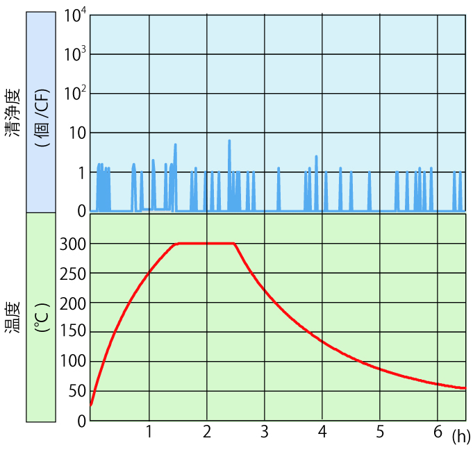 DT300H can maintain the cleanliness class 100 in all heating conditions (stable, increase, decrease).